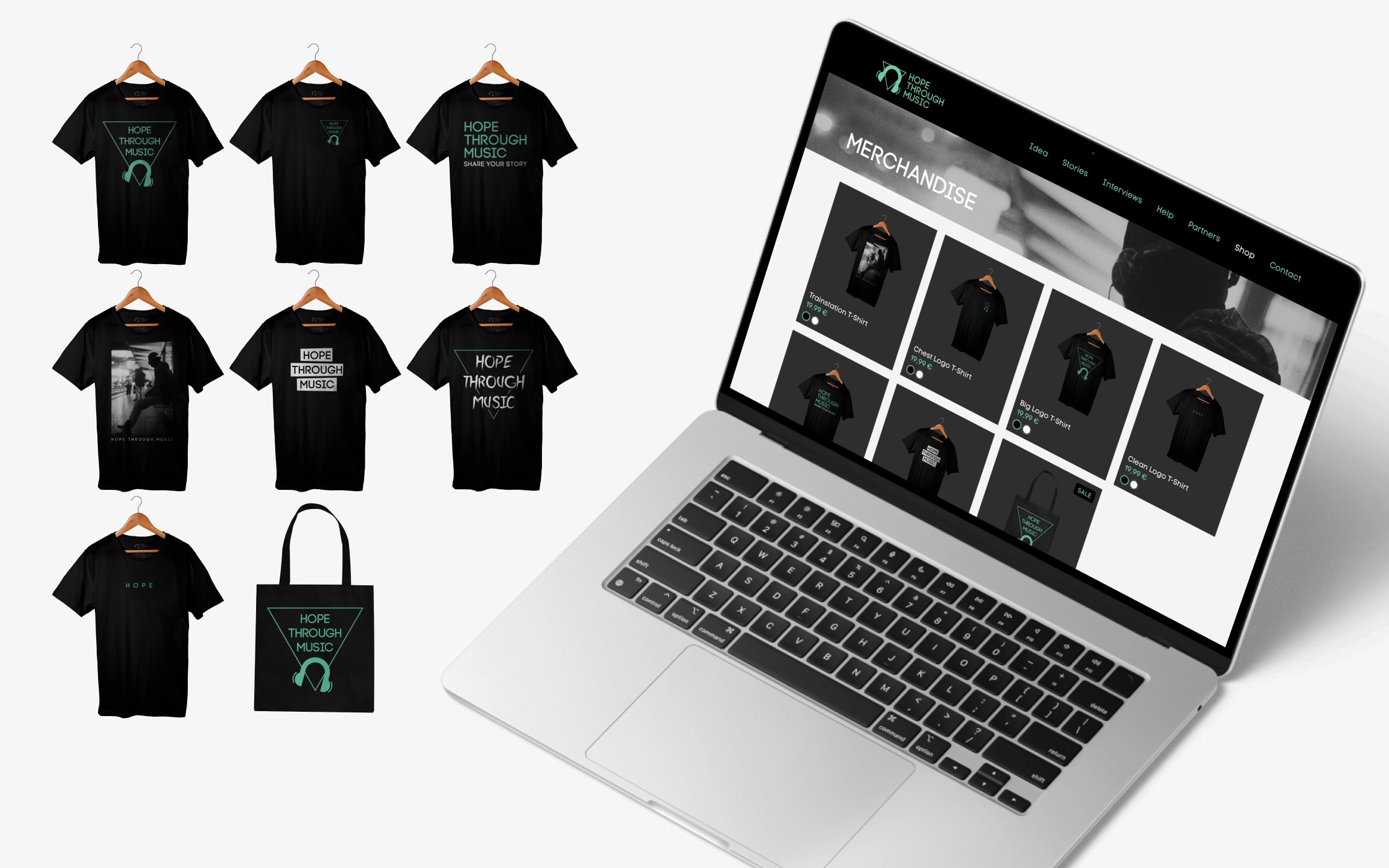 Ich war verantwortlich für das visuelle Erscheinungsbild, inklusive Logo, Webdesign, Webshop, Merchandise und der technischen Umsetzung der Website mit WordPress. Das Konzept wurde durch einen Blogbereich ergänzt, in dem Artists offen über ihre Verbindung zu Musik und mentaler Gesundheit sprechen.