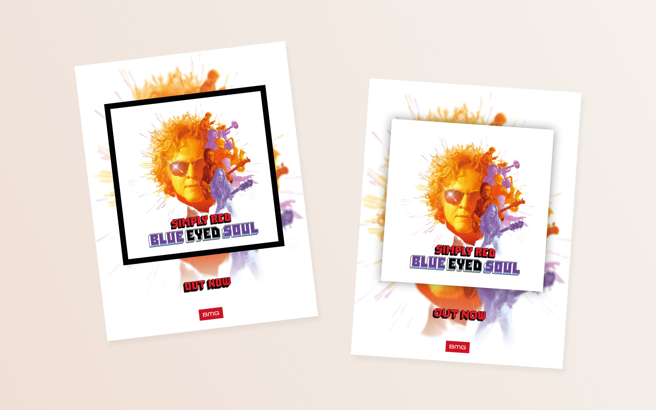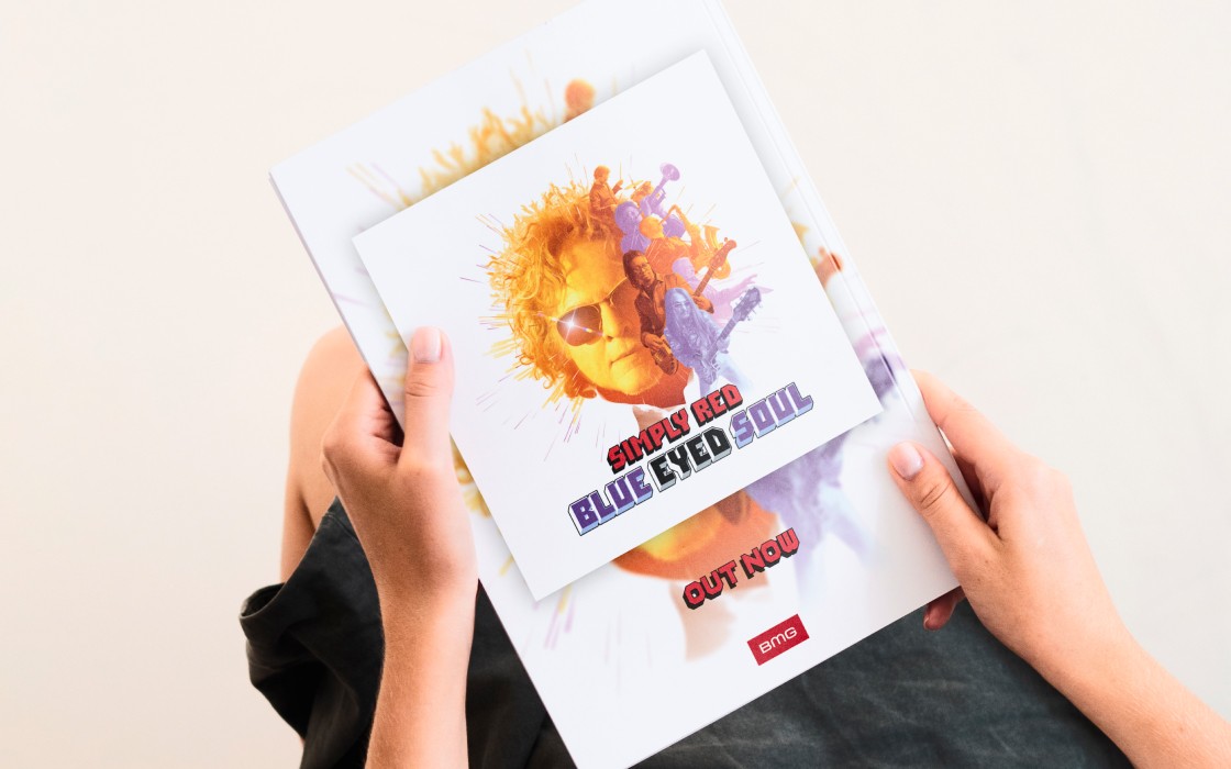 Für Simply Red habe ich gemeinsam mit dem Management eine Anzeige zum Album Blue Eyed Soul gestaltet. Die Anzeige erschien in einem niederländischen Musikmagazin und musste kurzfristig innerhalb von 24 Stunden umgesetzt werden.